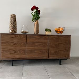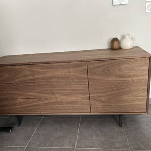 Buffet vintage en bois foncé noyer 2 portes 3 tiroirs L160 cm MANNY