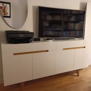 buffet blanc et bois trouvera naturellement sa place dans une cuisine ou un grand séjour et prendra ses marques dans de nombreuses ambiances déco où il apportera une touche de douceur épure. Une