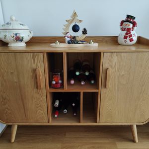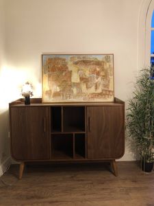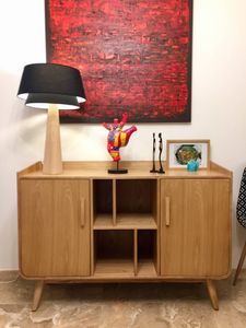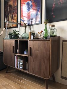 buffet rétro en bois foncé s'accordera très bien avec des murs blanc, un contraste de couleur qui permet de dynamiser votre déco d'intérueur. HALLEN se mariera également très bien avec des couleurs bleu-vert ainsi que du doré.