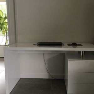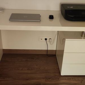 Bureau avec rangements 3 tiroirs design blanc laqué brillant L140 cm CALIX