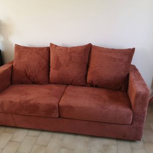 Canapé convertible 3 places en tissu velours côtelé terracotta avec matelas 13 cm BACIO
