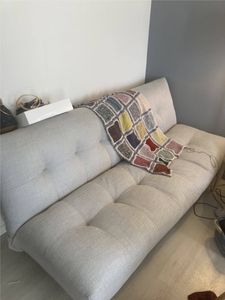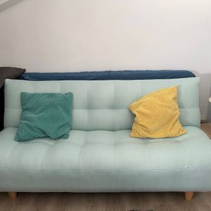 Canapé convertible scandinave 3 places en tissu gris clair et bois clair YUMI