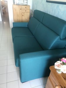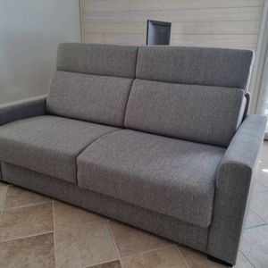 Canapé convertible avec têtières ajustables 3 places en tissu gris clair avec matelas 18 cm NORO