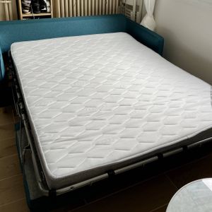 matelas 140 x 190 cm qui se déplie simplement, on peut le transformer en lit en deux temps trois mouvements. Ce
