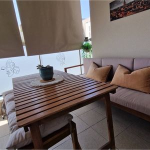 Canapé de jardin 3 places en bois massif et coussins déhoussables taupe L190 cm AKIS