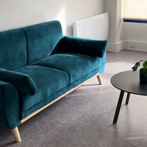Canapé scandinave 3 places en tissu gris clair et bois clair EKTOR