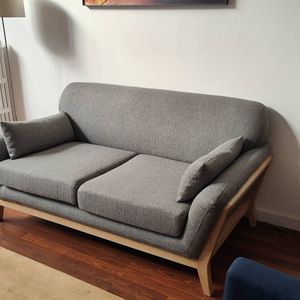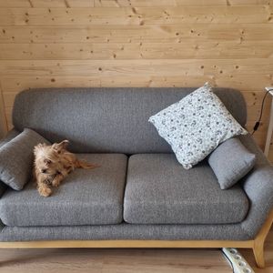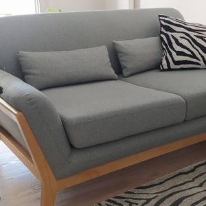 Le mariage entre une assise généreuse, habillée d'une trame 100% polyester - aussi agréable à l'oeil qu'au toucher - et une structure apparente en bois massif (frêne massif), fait tout le charme de ce canapé en tissu beige et bois clair.