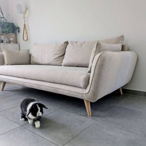 Canapé scandinave 3 places en tissu beige et bois clair CREEP