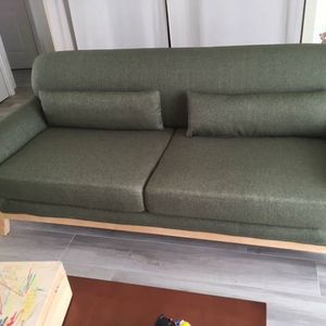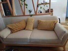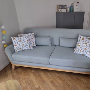 Canapé scandinave 3 places en tissu gris et bois clair YOKO
