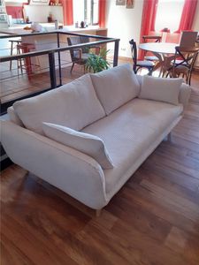 Canapé scandinave 3 places en tissu vert kaki et bois clair CREEP