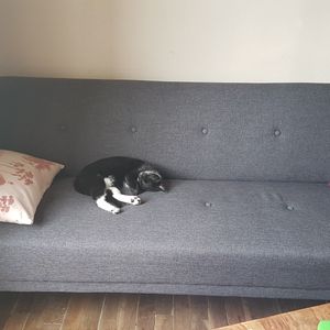 lit d'appoint 1 place (dimensions couchage L189 x P107 cm). Abaissez le dossier, dépliez les pieds de soutien (intégrés au dossier et accessibles par fermetures glissières), et profitez d'un