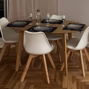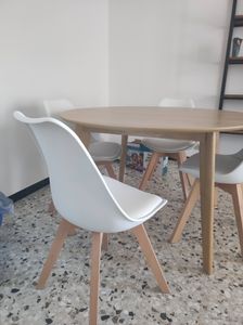 pieds en bois clair qui les composent permettent de faire de la salle à manger un endroit chaleureux et convivial tout en garantissant leur solidité.