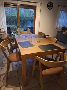 Fabriquées en contreplaqué chêne teinté noyer, ces petites chaises aux dimensions L44 x P56 x H82 cm sont à la fois légères et robustes. Elles se déplacent en un clin d'oeil selon nos besoins et se nettoient très facilement à l'aide d'un chiffon doux légèrement humide. Leur dossier courbé et leur assise rembourrée (densité de la mousse 35 Kg/m3) garantissent un exellent confort pour un usage quotidien. L'assise est habillée d'un revêtement en tissu effet velours jaune moutarde (100% polyester) qui contraste à merveille avec le bois foncé. Le vernis transparent apposé sur le chêne plaqué nourrit et protège le bois.