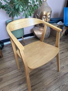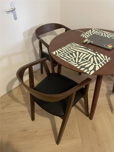 Ces belles assises seront les nouveaux atouts charme de votre intérieur. Combinée à un total look bois foncé, la belle silhouette rétro nous rappelle sans équivoque les pièces de mobilier nordiques des années 50. Authentique et déco, ce modèle de chaise de cuisine design en bois foncé se distingue par son dossier circulaire dont les lignes courbes se prolongent jusqu'aux accoudoirs. Aériennes, faciles à prendre en main et à déplacer, ces chaises avec accoudoirs en bois massif et revêtement noir sauront donner beaucoup de cachet à la salle à manger.