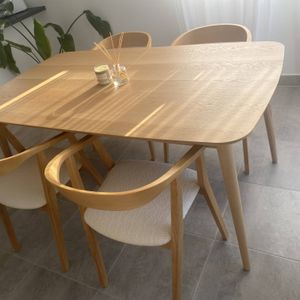 Pour un espace repas harmonieux, accompagnez les BAHIA d'une table à manger en bois massif. Une suspension en fibres viendra parfaire le décor et réchauffer d'autant plus l'atmosphère !