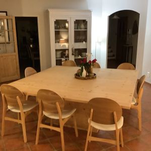 La structure plaquée frêne est composée d'un dossier légèrement incurvé pour épouser la forme du dos, l'ensemble est soutenu par un piètement en hévéa massif aux courbes travaillées, véritable gage de stabilité.