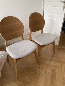 Ces chaises au design original se démarquent par des lignes douces et l'association réussie du bois aux reflets dorés et d'une assise en tissu effet laine bouclée blanc. Sans conteste, ces chaises scandinaves apporteront une note élégante et chaleureuse dans une salle à manger inspirée par une déco nordique.