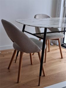 Avec leur silhouette inspirée des années 50, les chaises COSETTE offrent un savoureux mélange entre confort et design. Leur dossier haut et courbé d'une hauteur de 38.5 cm garantit un bon maintien du dos et leur coque généreusement rembourrée (densité de la mousse 25 kg/m3) un confort durable. Avec leurs lignes fluides et leur design tout en courbes, ces chaises scandinaves sont synonymes de convivialité et de partage. Légères, elles se déplacent aisément grâce à l'ouverture en bas du dossier.