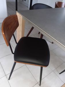 Chaises vintage en bois foncé noyer assises noires et métal noir (lot de 2) JOLINE