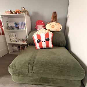 Chauffeuse 1 place convertible en tissu velours côtelé vert céladon SPENCER