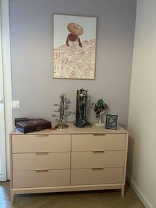 Commode rose poudré et métal doré 6 tiroirs L120 cm GIANA