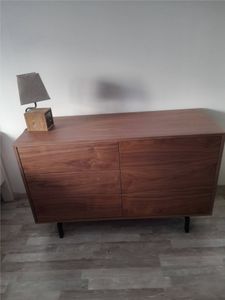 Commode vintage bois foncé noyer et métal noir 6 tiroirs L120 cm MANNY