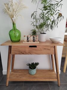 Console naturelle avec tiroir en bois massif L90 cm FRANKLIN