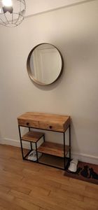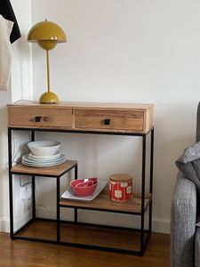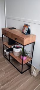Dans une chambre, un salon, un bureau ou une entrée au look 100% factory, cette petite console aux dimensions L80 x P30 x H80 cm apportera un rendu authentique et chaleureux. Sans se cantonner aux déco d'intérieur à l'inspiration loft new yorkais, pensée comme un meuble de rangement pratique et décoratif, cette console industrielle en bois et métal réchauffera la décoration de nombreuses ambiances !