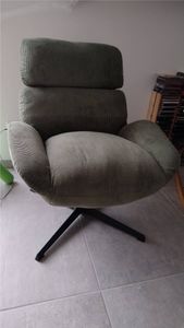 Fauteuil pivotant en tissu velours côtelé écru et métal noir KLEM