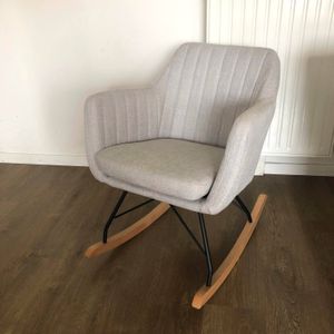 Rocking chair scandinave en tissu bleu canard, métal noir et bois clair ALEYNA