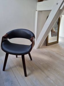 Fauteuil design noir et bois foncé noyer ARAMIS