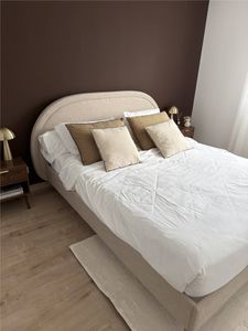 Hautement esthétique et véritable atout confort, la tête de lit ronde de ce lit queen size beige est caractérisée par son épais garnissage mousse. Adoptez ainsi la bonne posture pour visionner votre série préférée, profiter d'une lecture nocturne ou déguster votre petit-déjeuner au lit !