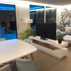 Sa ligne épurée, ses finitions de qualité en font un meuble TV design facile à vivre et simple d'entretien : en panneaux de fibres de bois laqué blanc sur la totalité de sa structure et noir (épaisseur 2 cm) très résistant, il nécessite tout au plus un chiffon doux légèrement humidifié pour retrouver toute sa superbe.
