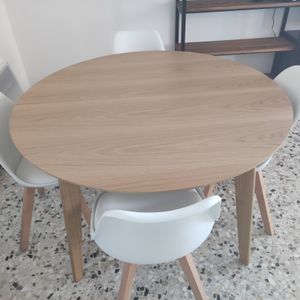 Table à manger ronde extensible finition chêne L120-150 cm LEENA
