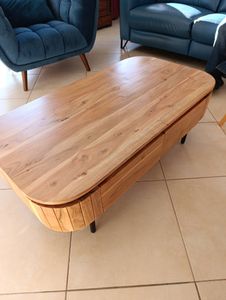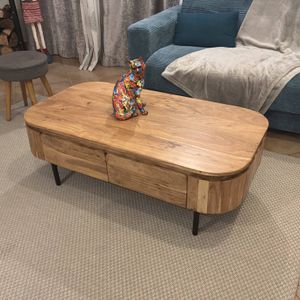 Table basse avec rangements en bois massif et métal noir 4 tiroirs L115 cm NAPOLI