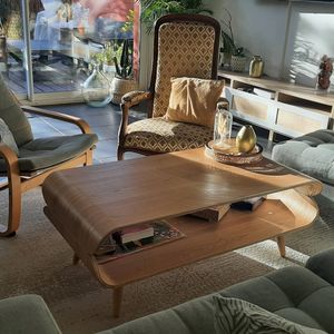 D'inspiration nordique, son design tout en rondeurs et son association blanc et bois apporteront une touche scandinave et un brin vintage votre salon. Facile à intégrer au sein de sa décoration d'intérieur, cette table basse se fondra naturellement au sein d'une déco nordique comme rétro !