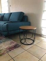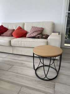 Table d'appoint ronde bois clair chêne et métal noir D42 cm LACE