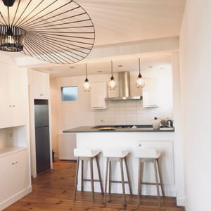 hauteur d'assise de 75 cm, ce tabouret haut pourra accompagner une table bar ou le comptoir d'une cuisine ouverte d'environ un mètre.