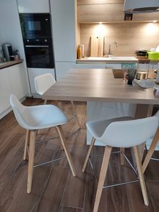 Tabourets de bar design blanc et bois clair H65 cm (lot de 2) NONIE