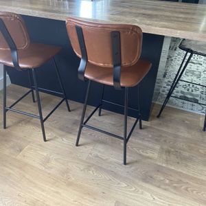 Tabourets de bar vintage noir avec pieds métal 65cm (lot de 2) LAB vendus par lot de 2. Livrés prêt à monter.