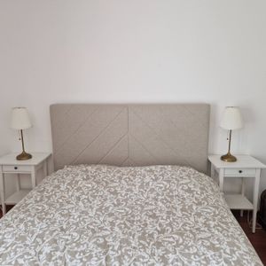 Donnez une personnalité bien affirmée à votre chambre à coucher en misant sur le triptyque literie - dressing - rangement, des tables de chevet en bois clair aux côtés de cette tête de lit 160 beige à poser vous aideront à conserver votre pièce de vie cocooning bien ordonnée.